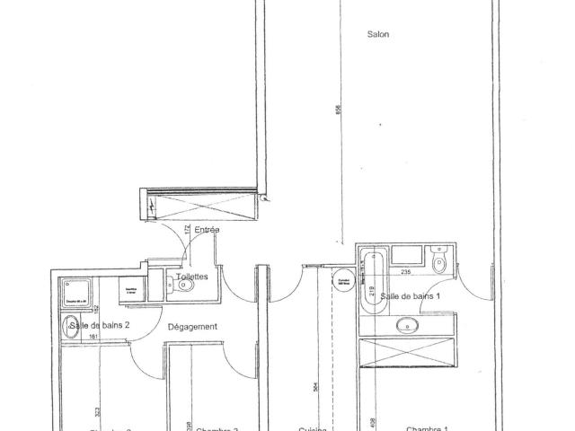 Appartement F4 (loué non meublé) d'une surface hab de 104.5 m² comprenant: Un hall d'entrée (placard), wc, séjour lumineux accès sur une terrasse expo Sud/Ouest.
